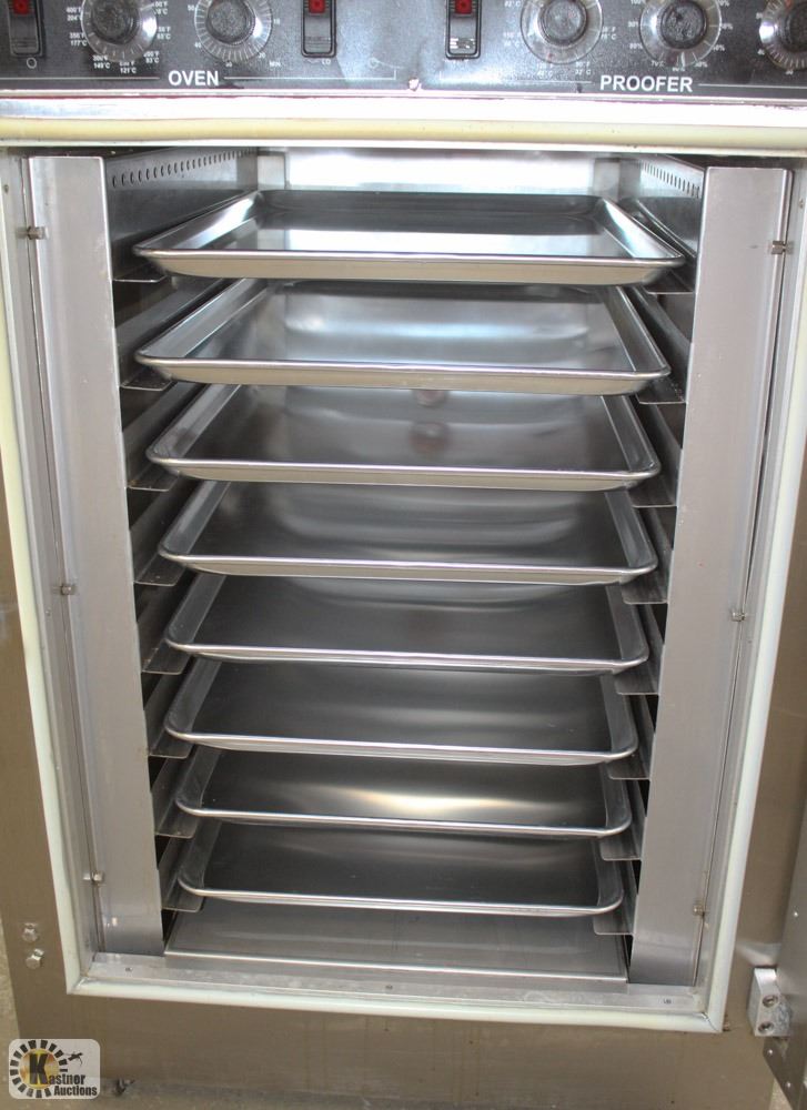 KW33 - NU-VU DOUBLE DECK ELECTRIC OVEN PROOFER COMBO, 208V, 3 PHASE, MODEL OP-4/8M, USED TESTED / WORKING