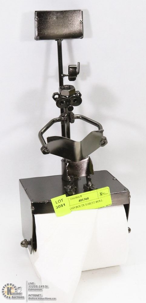 ORIGINAL, COLLECTABLE, HOLDS ONE ROLL OF TOILET PAPER, HANGS ON WALL, MADE OF METAL ART