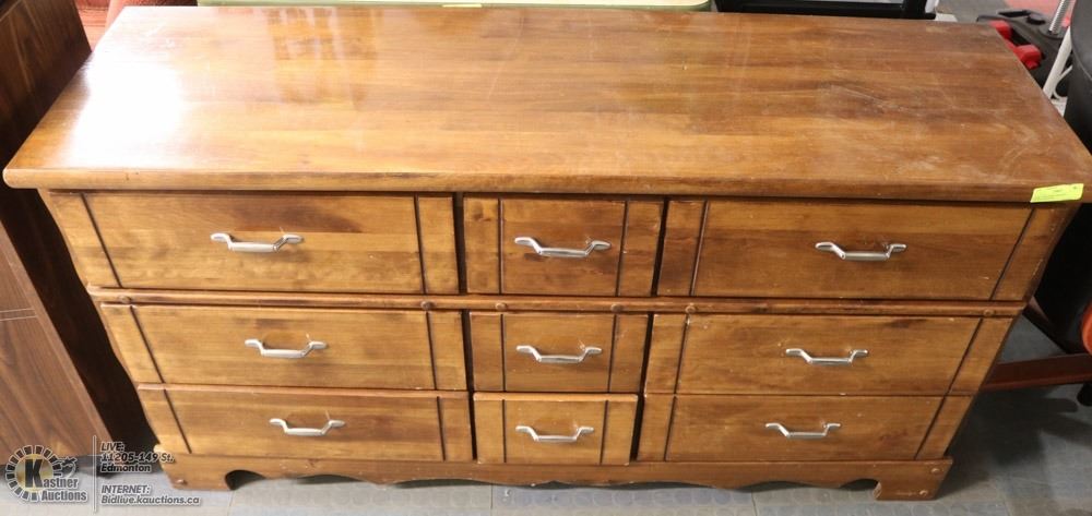 OAK 9 DRAWER DRESSER 57"Wx18"Dx30"H