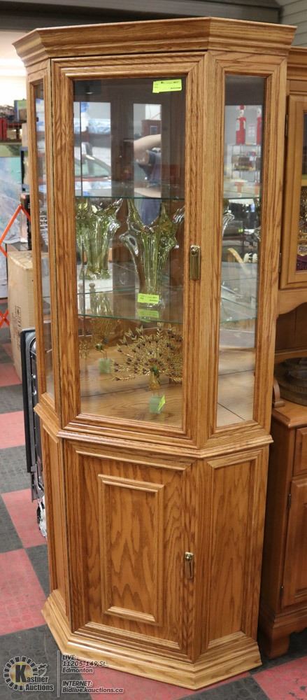 OAK CURIO CABINET 22X22X74". FURNITURE