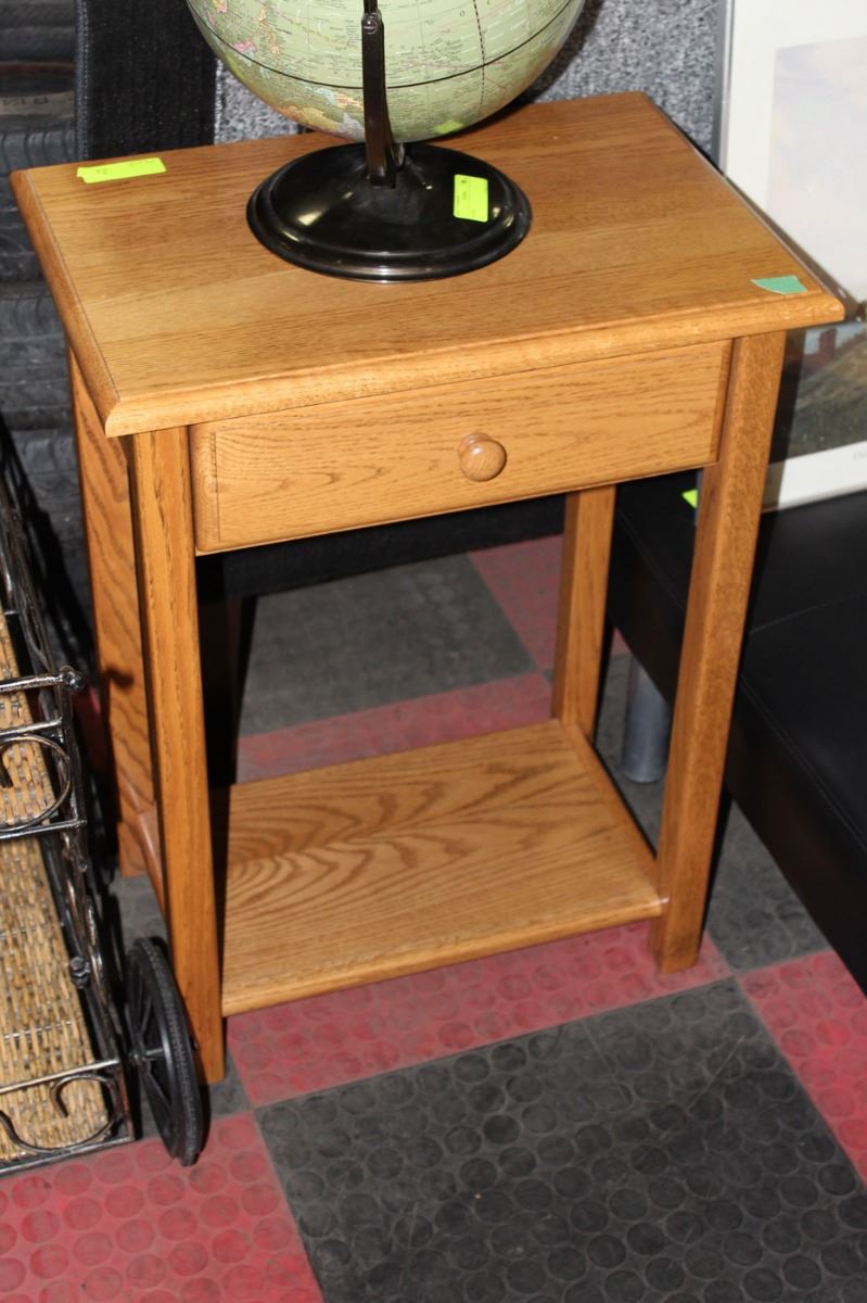 OAK END TABLE W DRAWER
