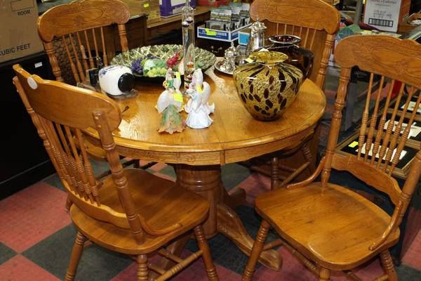 OAK TABLE AND 4 CHAIRS W/ LEAF