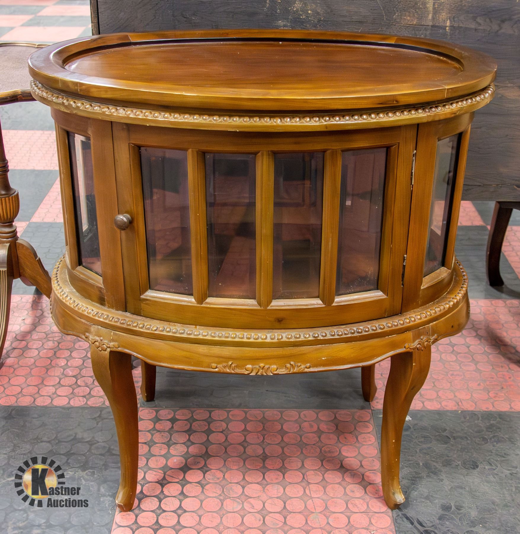 OBLONG SIDE TABLE W/GLASS DOORS H-30  W-19  L-28