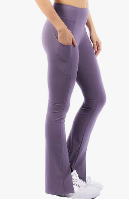 OFENTI YOGA LEGGINGS WITH FRONT SLIT AND POCKETS HIGH WAIST TUMMY CONTROL BUTTERY SOFT COMFY STRETCHY WORKOUT PANTS. SMALL SIZE. DARK GREEN COLOR.