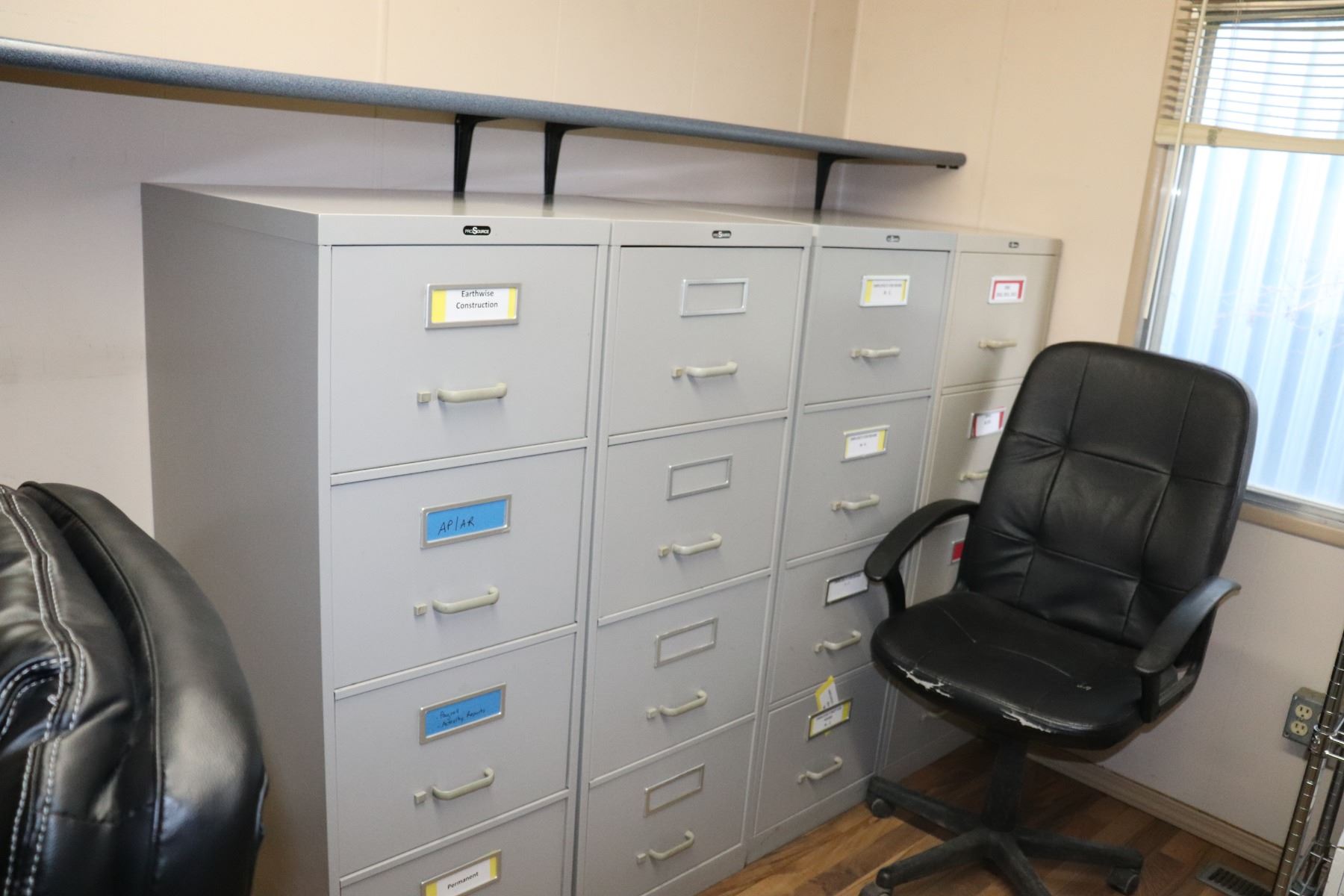 2 DOOR METAL CABINET, METRO RACK, DESKTOP COMPUTER, 4 FILE CABINETS