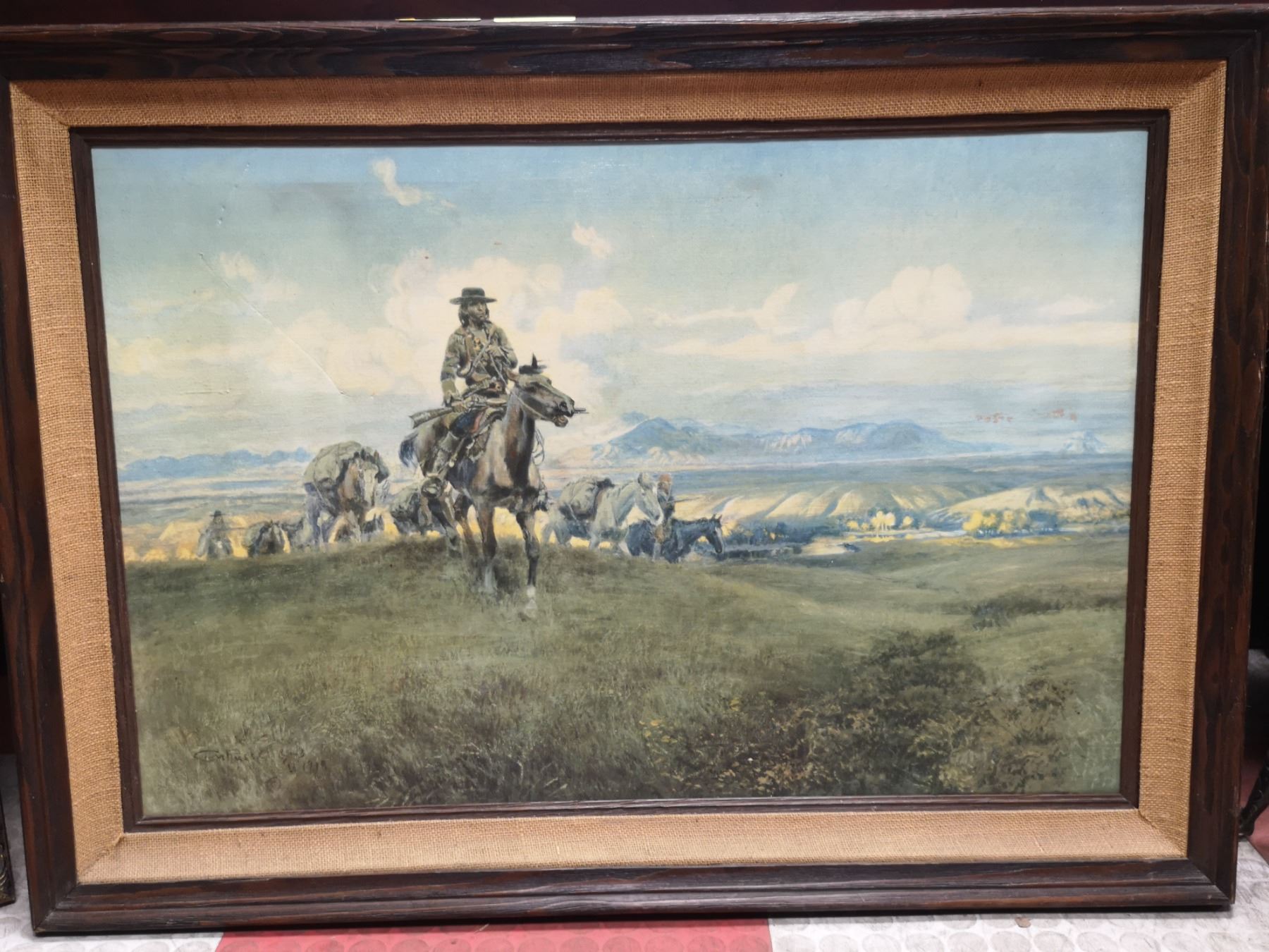 OIL ON CANVAS SIGNED CM RUSSELL 1918. THE WORLD WAS