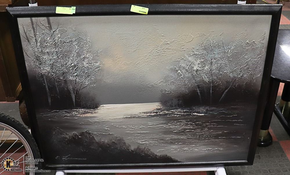 OIL ON CANVAS WITH WINTER SCENE, 43 X 33