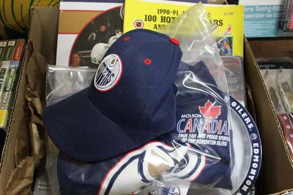OILERS COLLECTABLES INCL. 1970'S HOCKEY HALL OF FAME BOOK W/ DVDS/CALENDER, ETC