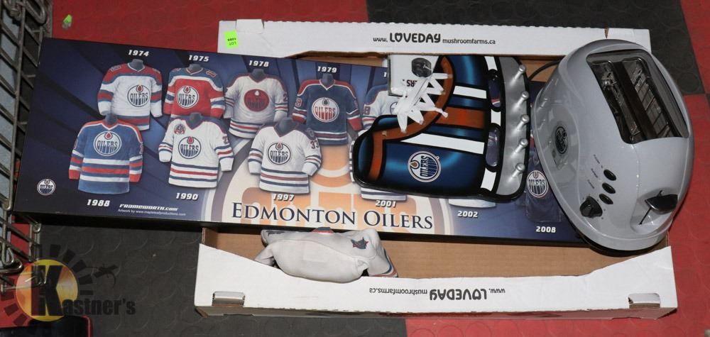 LAMINATE OILER TEAM JERSEY, SMALL OILER JERSEY ON STAND 1979 PLAQUE. COLLECTIBLES