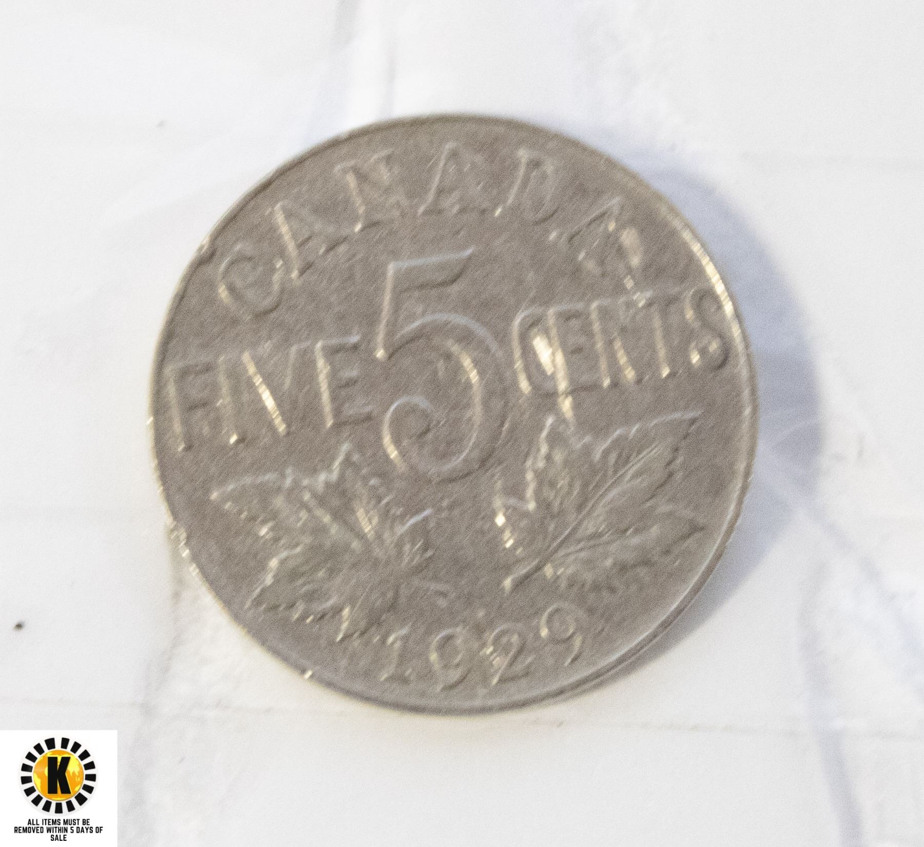 OLD 1929 CANADA KING GEORGE FIFTH 5 CENTS COIN