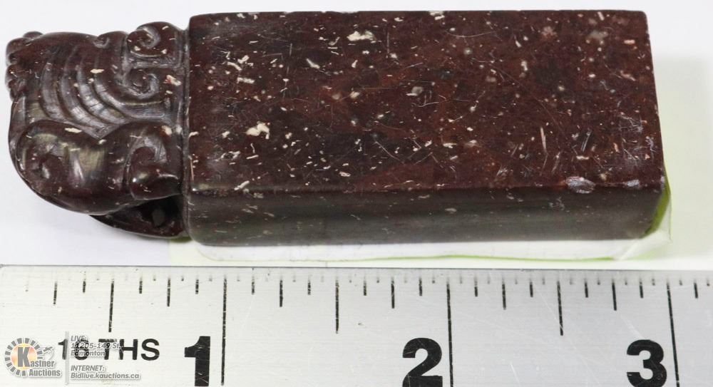 OLD CHINESE CARVED SOAPSTONE DRAGON "SEAL"