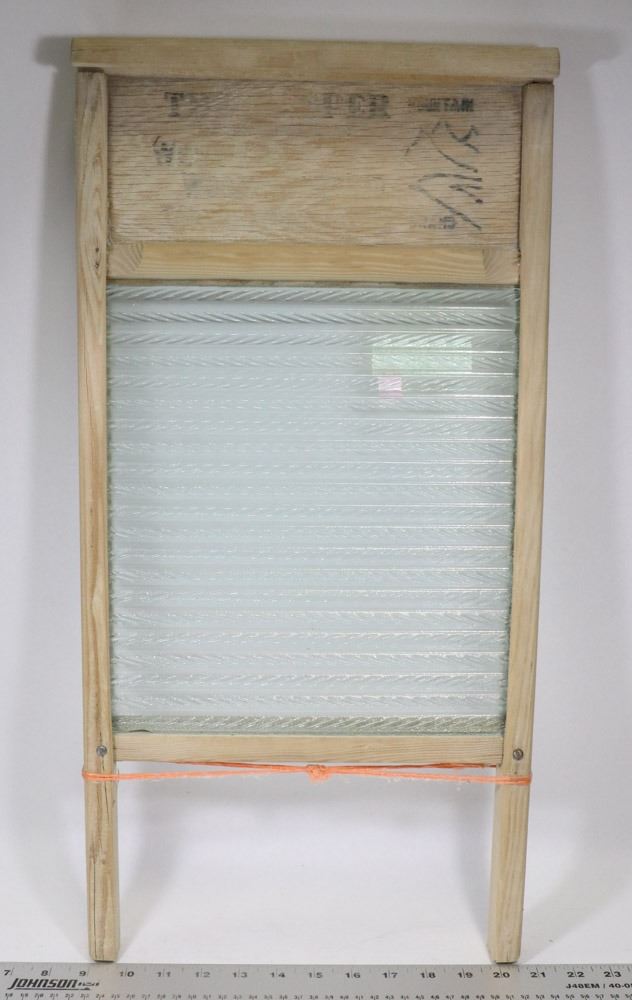 OLD GLASS WOOD WASHBOARD