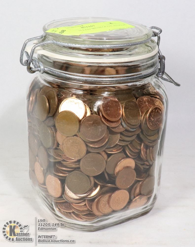 MASON JAR FILLED WITH OLD CANADA1 CENT COINS