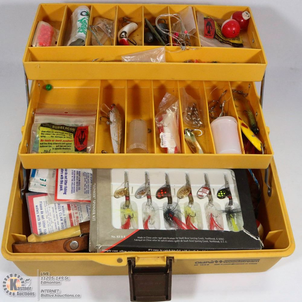 OLD PAL WOODSTREAM FISHING TACKLE BOX & CONTENTS