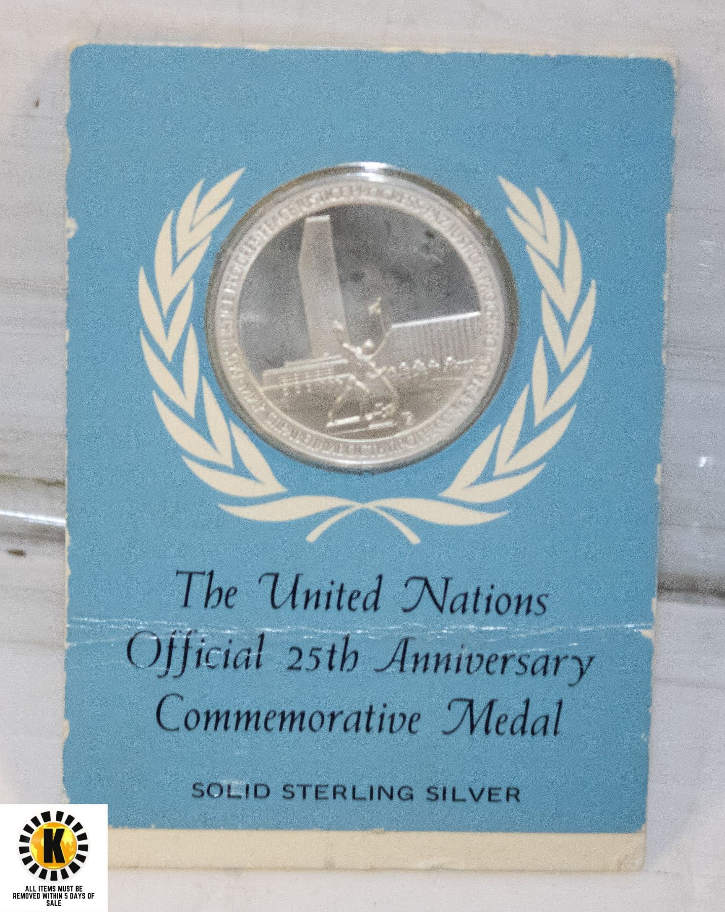 OLD SOLID STERLING SILVER UNITED NATIONS MEDAL