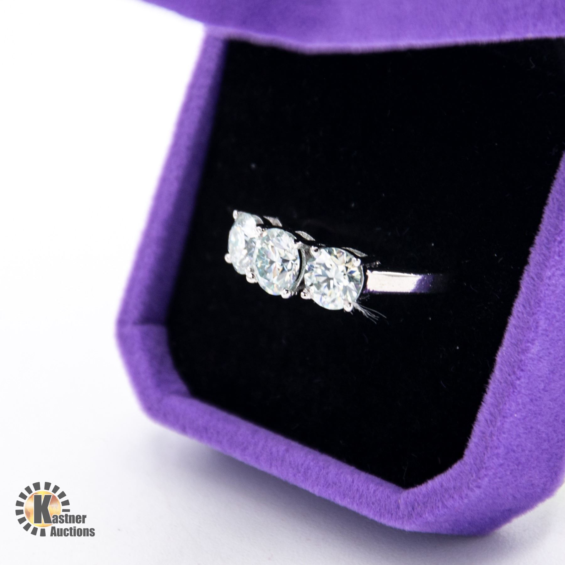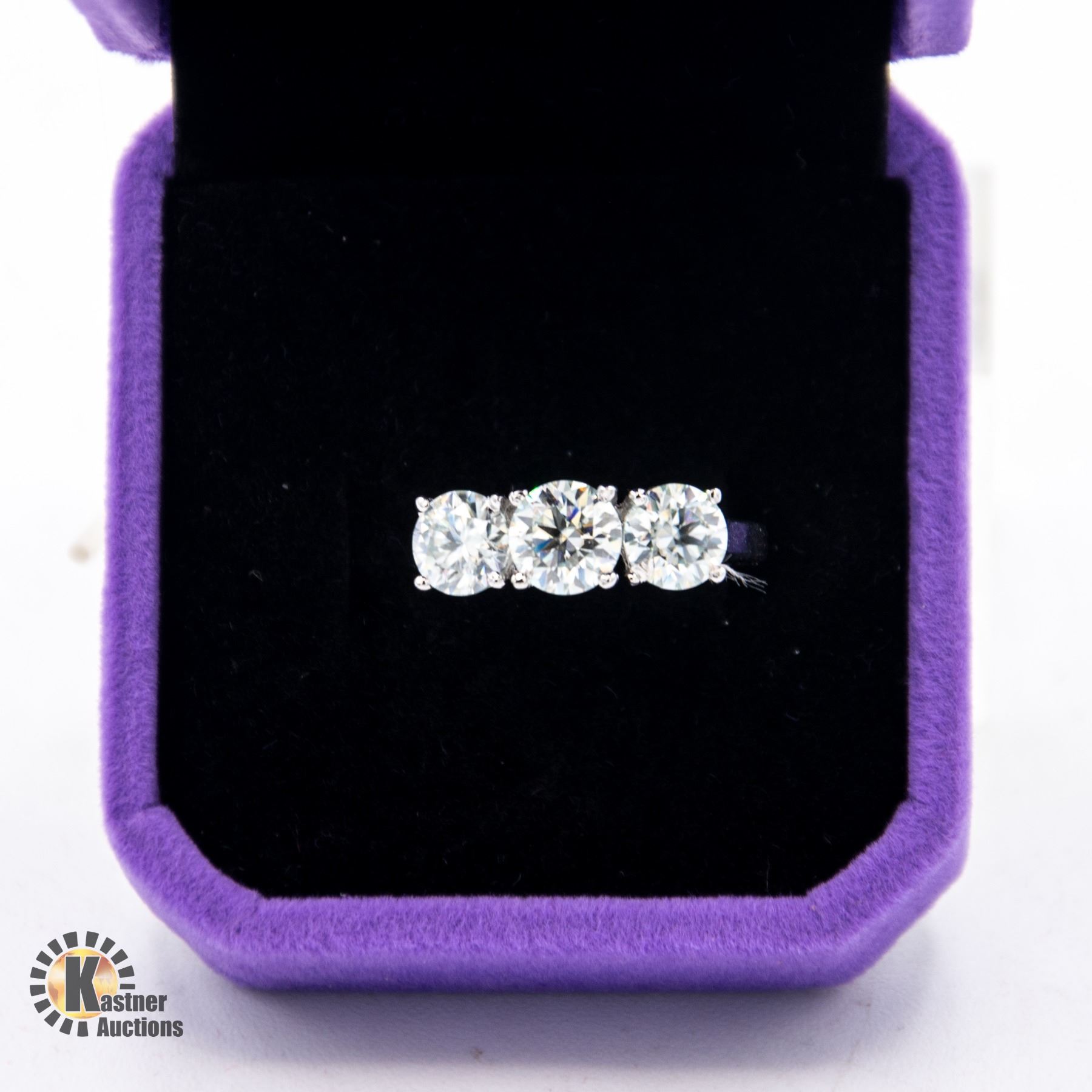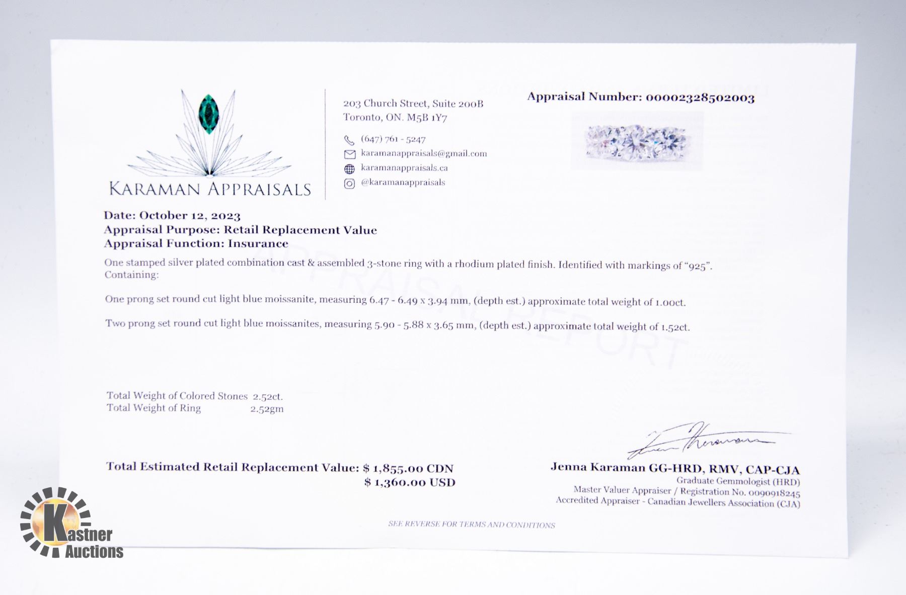 CARAT WEIGHT ON EITHER SIDE FOR A TOTAL APPROXIMATE WEIGHT OF 2.52 CARAT SET IN SILVER PLATED RING SIZE 7.5 APPRAISED VALUE $1,855.00 **ALL ITEMS MUST BE REMOVED BY 5PM SATURDAY, DECEMBER 16TH 2023. ALL REMAINING ITEMS WILL BE SUBJECT TO A $6.00 PER DAY STORAGE CHARGE. ANY ITEMS REMAINING AFTER TUESDAY, JANUARY 2ND 2023 WILL BE CONSIDERED FORFEITED. NO REFUNDS WILL BE ISSUED FOR FORFEITED ITEMS. TO SCHEDULE A PICK UP APPOINTMENT CLICK HERE