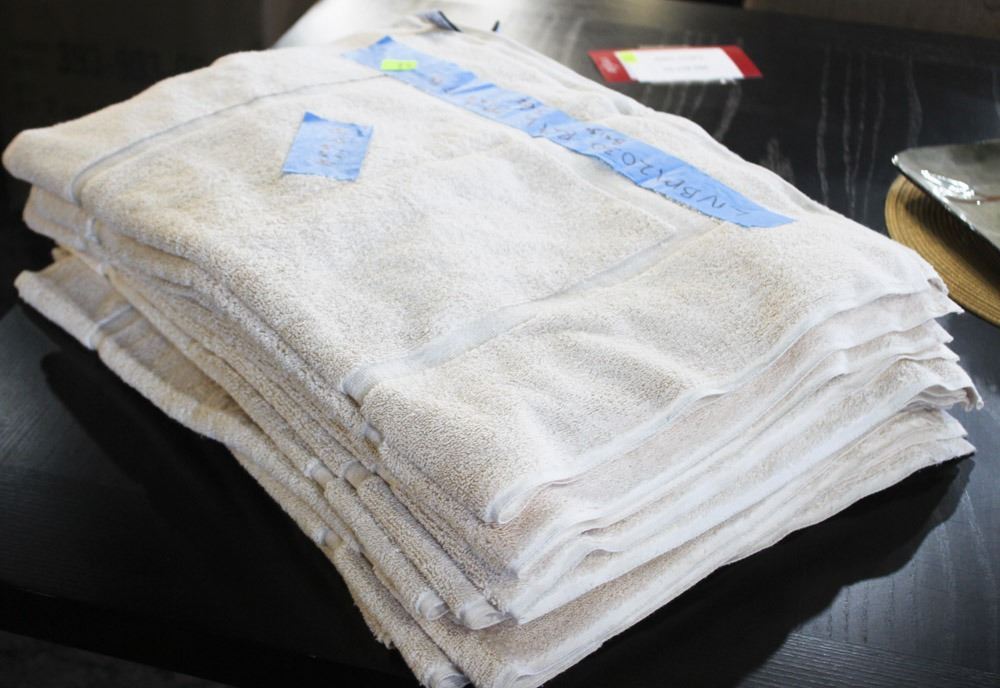ONE DOZEN OF BEIGE BATH MATS