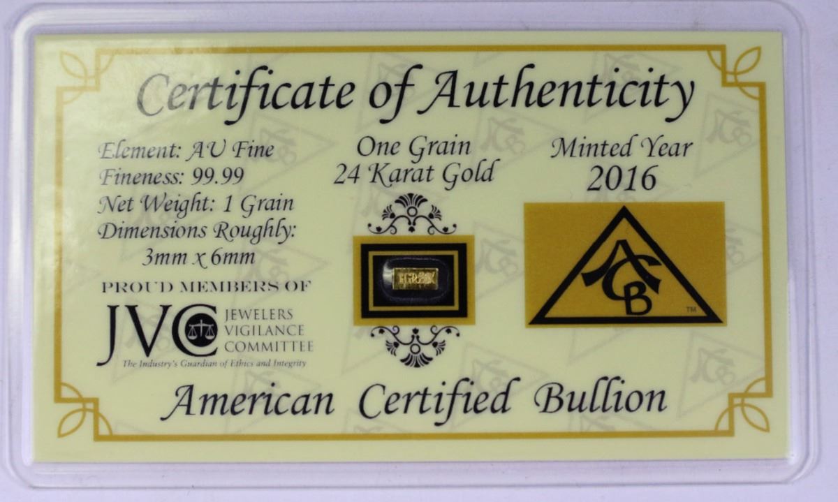 ONE GRAIN 24 KARAT GOLD AMERICAN CERTIFIED BULLION