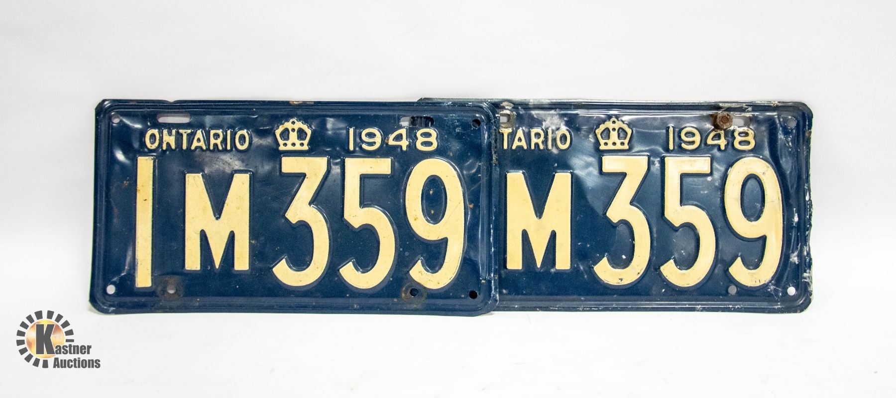 ONTARIO 1948 MATCHING PAIR LICENSE PLATES