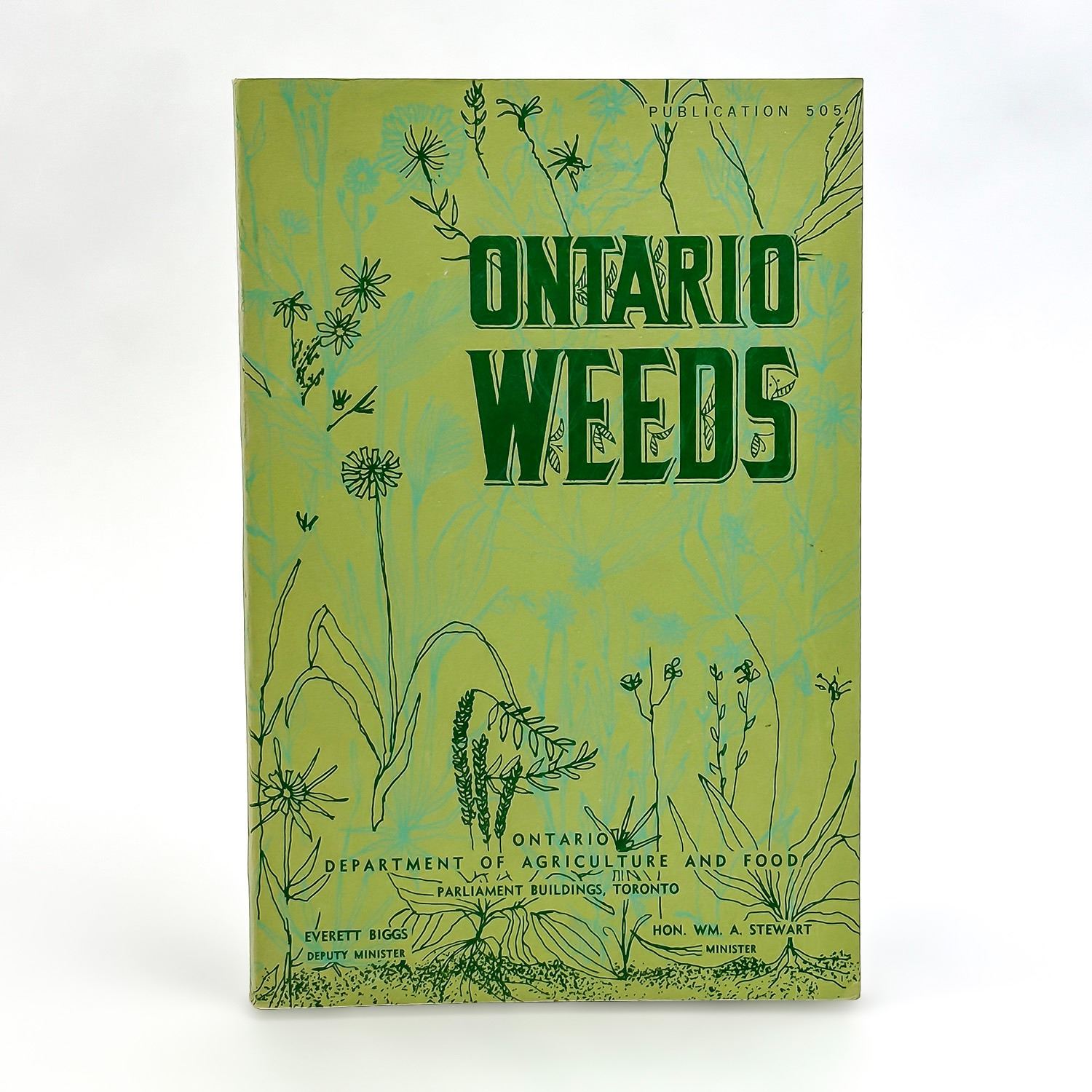 #8561 - VINTAGE SOFTCOVER BOOK: ONTARIO WEEDS - IDENTIFICATION, ILLUSTRATION, DESCRIPTIONS. ONTARIO DEPARTMENT OF AGRICULTURE AND FOOD - PARLIAMENT BUILDINGS, TORONTO. PUBLICATION 505 - 142 PAGES. MEASURES: 9” (23 CM) BY 6” (15 CM)***ITEM(S) LOCATED IN LETHBRIDGE ALBERTA. FREE TRANSPORT TO EDMONTON OFFICE AVAILABLE FOR THIS AUCTION. WORLDWIDE SHIPPING IS AVAILABLE FOR ALL ITEMS