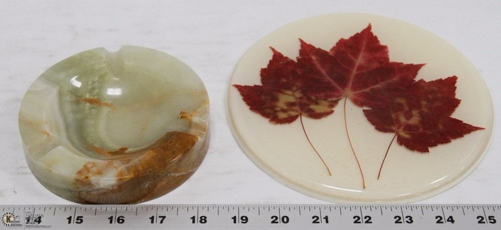 ONYX ASHTRAY WITH HAND CRAFTED MAPLE LEAF HANGING