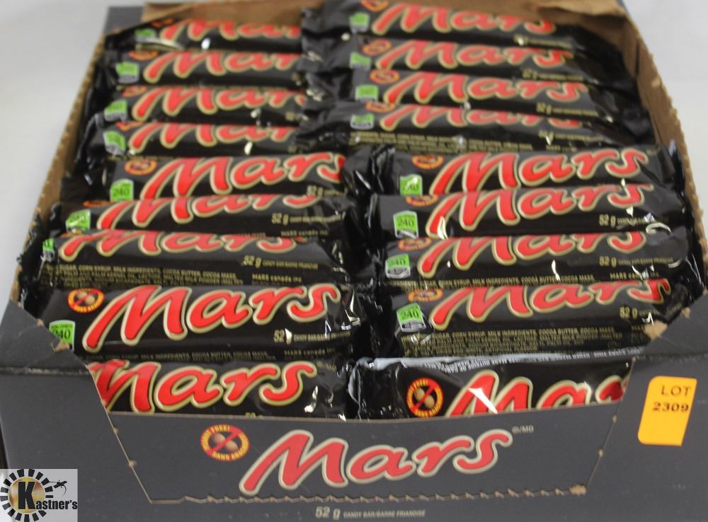 OPEN BOX OF MARS CHOCOLATE BARS.