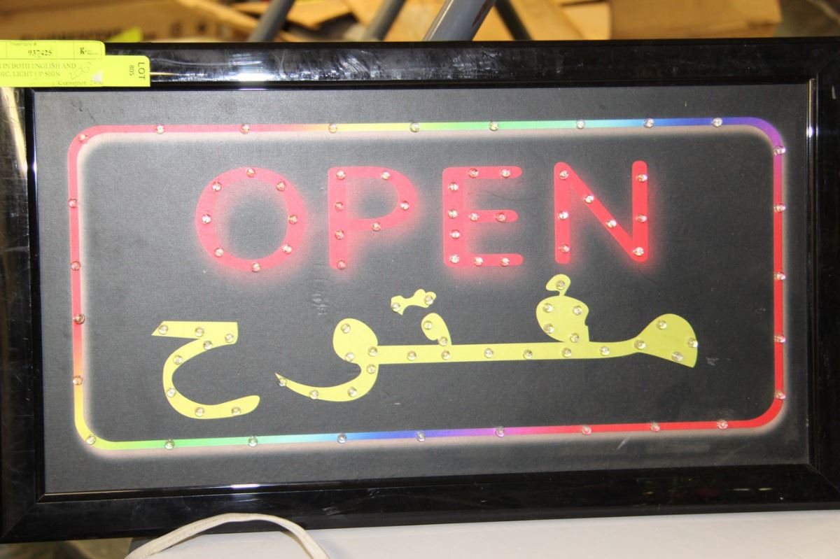 OPEN IN BOTH ENGLISH AND ARABIC, LIGHT UP SIGN