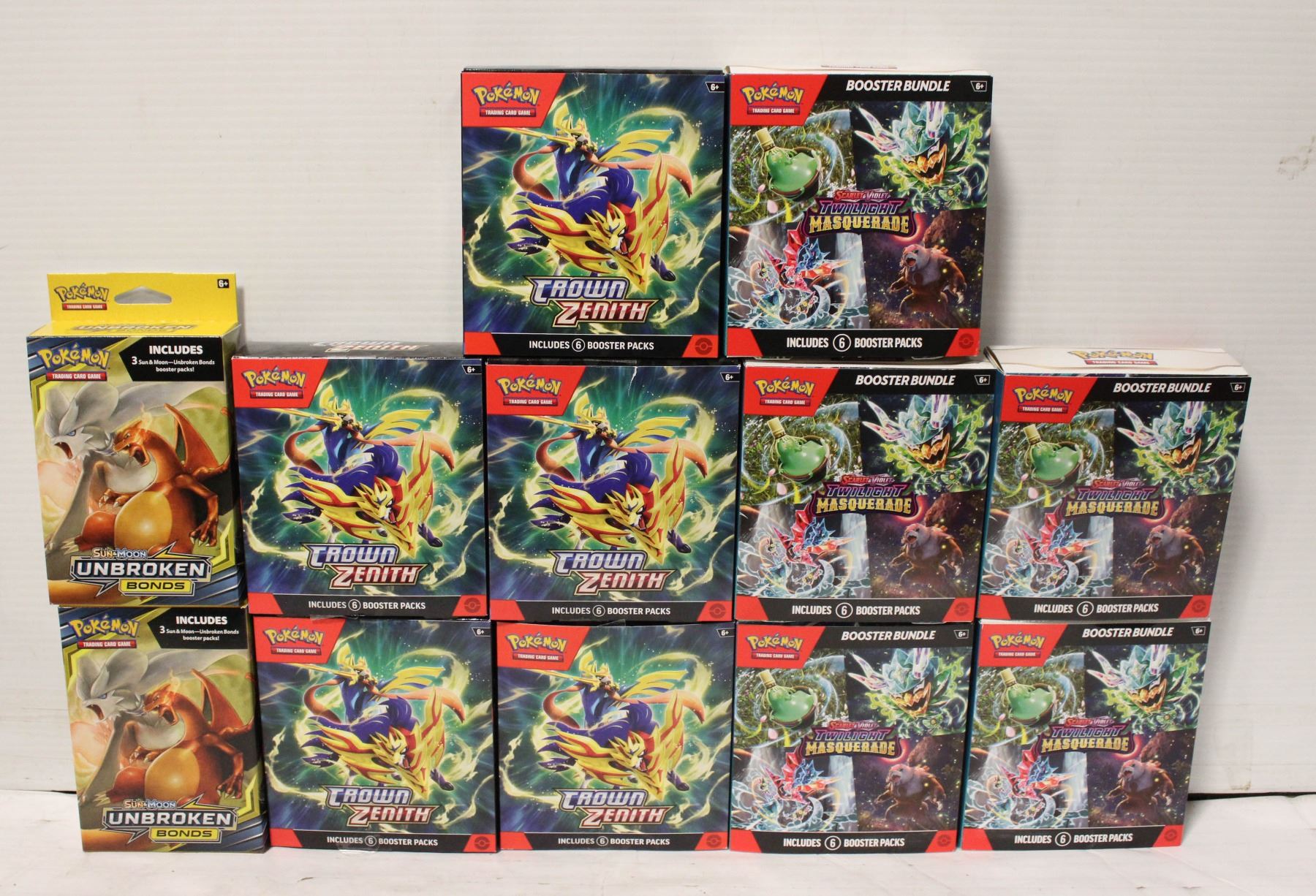 OPEN ITEM POKEMON CARD LOT IN BOOSTER BUNDLES (12 BOXES) **ALL ITEMS MUST BE REMOVED BY 5PM SATURDAY, SEPTEMBER 28TH 2024. ALL REMAINING ITEMS WILL BE SUBJECT TO A $6.00 PER DAY STORAGE CHARGE. ANY ITEMS REMAINING AFTER MONDAY, OCTOBER 14TH 2024 WILL BE CONSIDERED FORFEITED. NO REFUNDS WILL BE ISSUED FOR FORFEITED ITEMS. TO SCHEDULE A PICK UP APPOINTMENT CLICK HERE