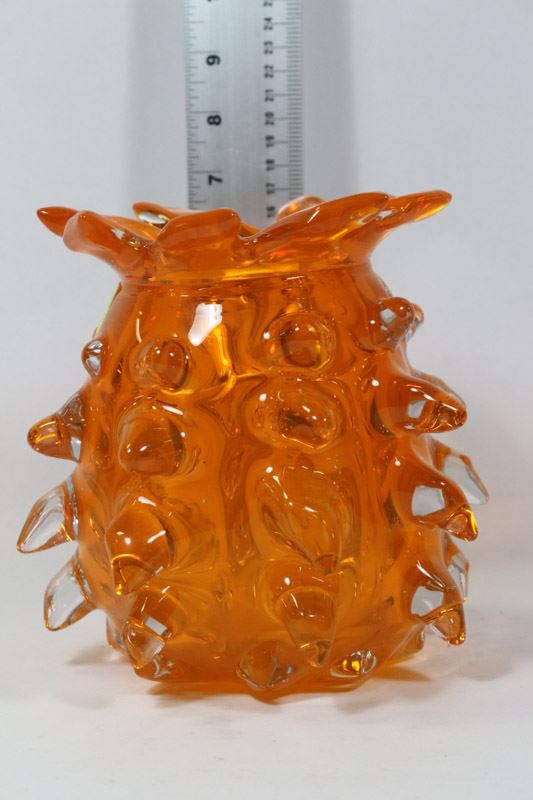 ORANGE ART GLASS PINEAPPLE STYLE VASE