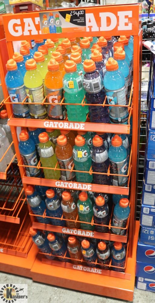 ORANGE GATORADE 4 TIER BEVERAGE DISPLAY RACK. 21X 20X 55