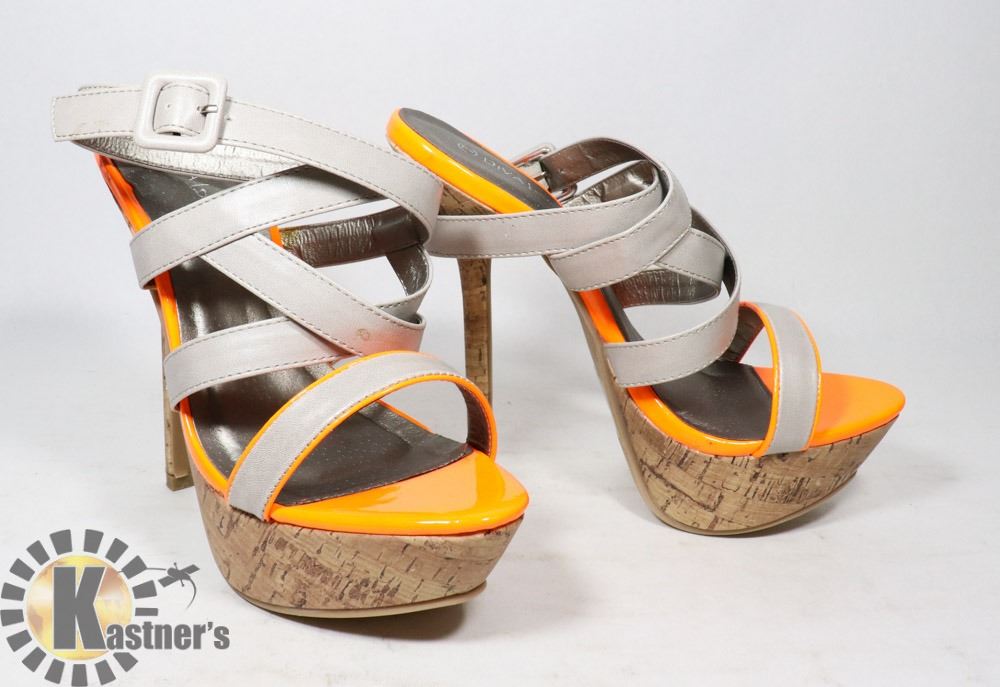 ORANGE WITH SILVER TRIM STILETTOS, SIZE - 8.5