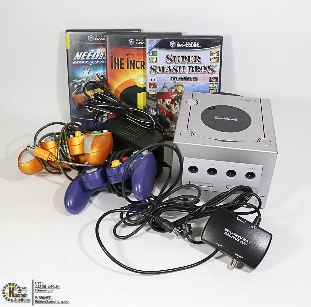 ORIGINAL GAMECUBE W/ 3 GAMES, 2 CONTROLLERS, ETC