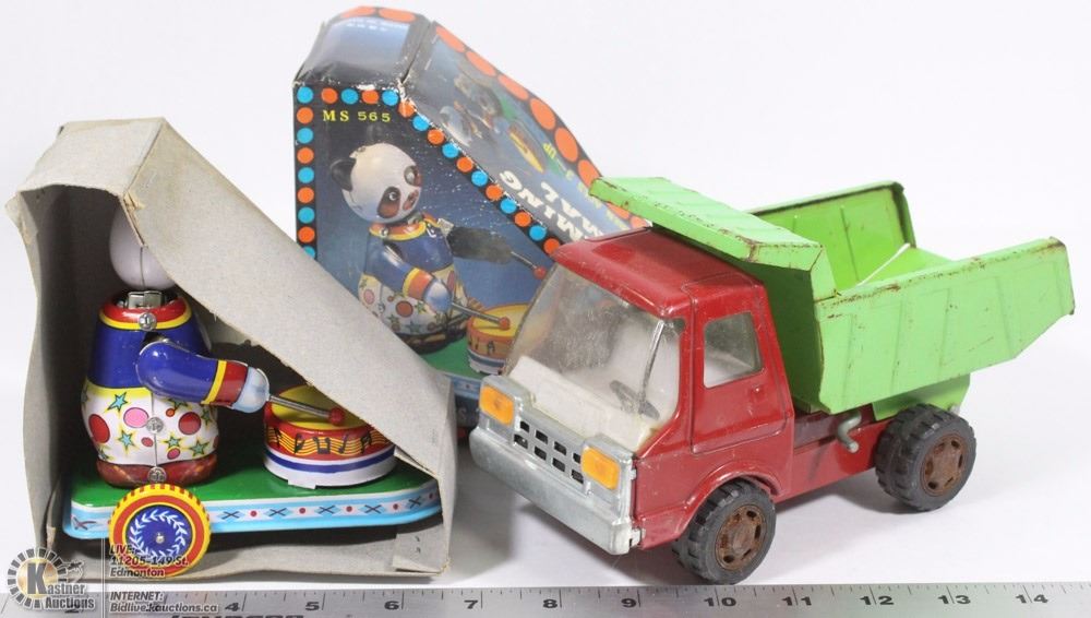 ORIGINAL JAPAN METAL DUMP TRUCK & TIN PANDA TOY