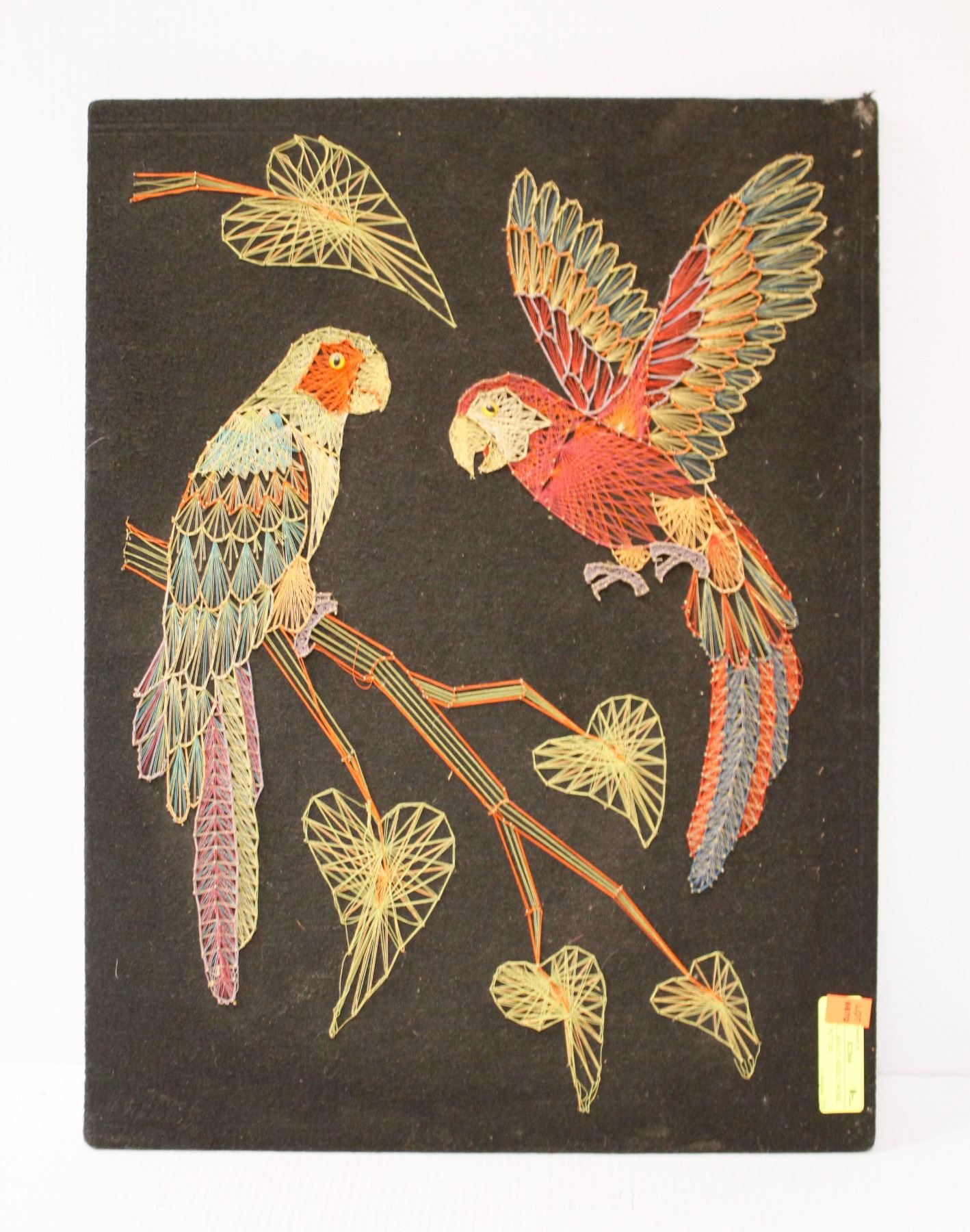 ORIGINAL NEEDLE WORK PARROT PICTURE. 18 X 24