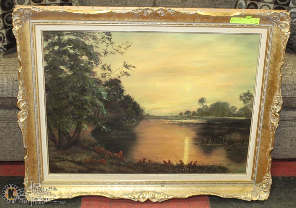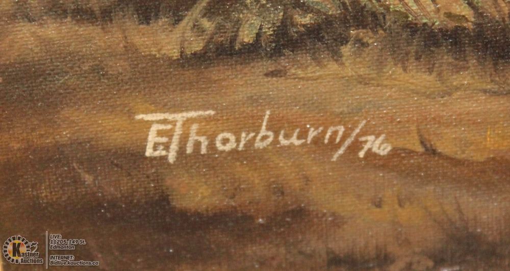 E. THORNBURN 1976. 36"W X 28"H. GOLD COLOR ORNATE FRAME.