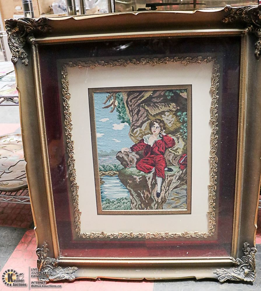 ORNATE FRAMED NEEDLEPOINT PICTURE 25" X 30"