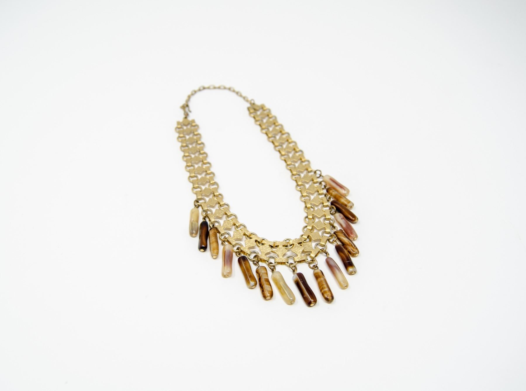 ORNATE GOLD TONE NECKLACE WITH STONE DROP DETAIL