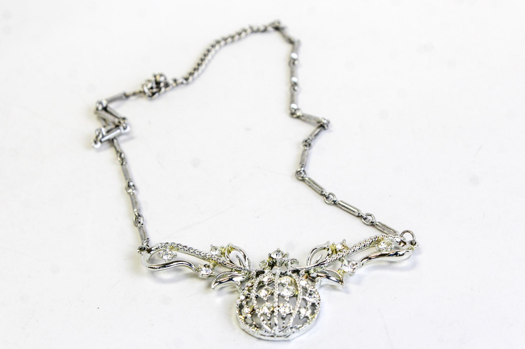 ORNATE SILVER TONE RHINESTONE GLOBE NECKLACE
