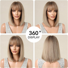 OUFEI Ombre Blonde Bob Wig With Bangs Short Straight Wig For Women Synthetic Hair Wigs for Daily Party Cosplay Wear