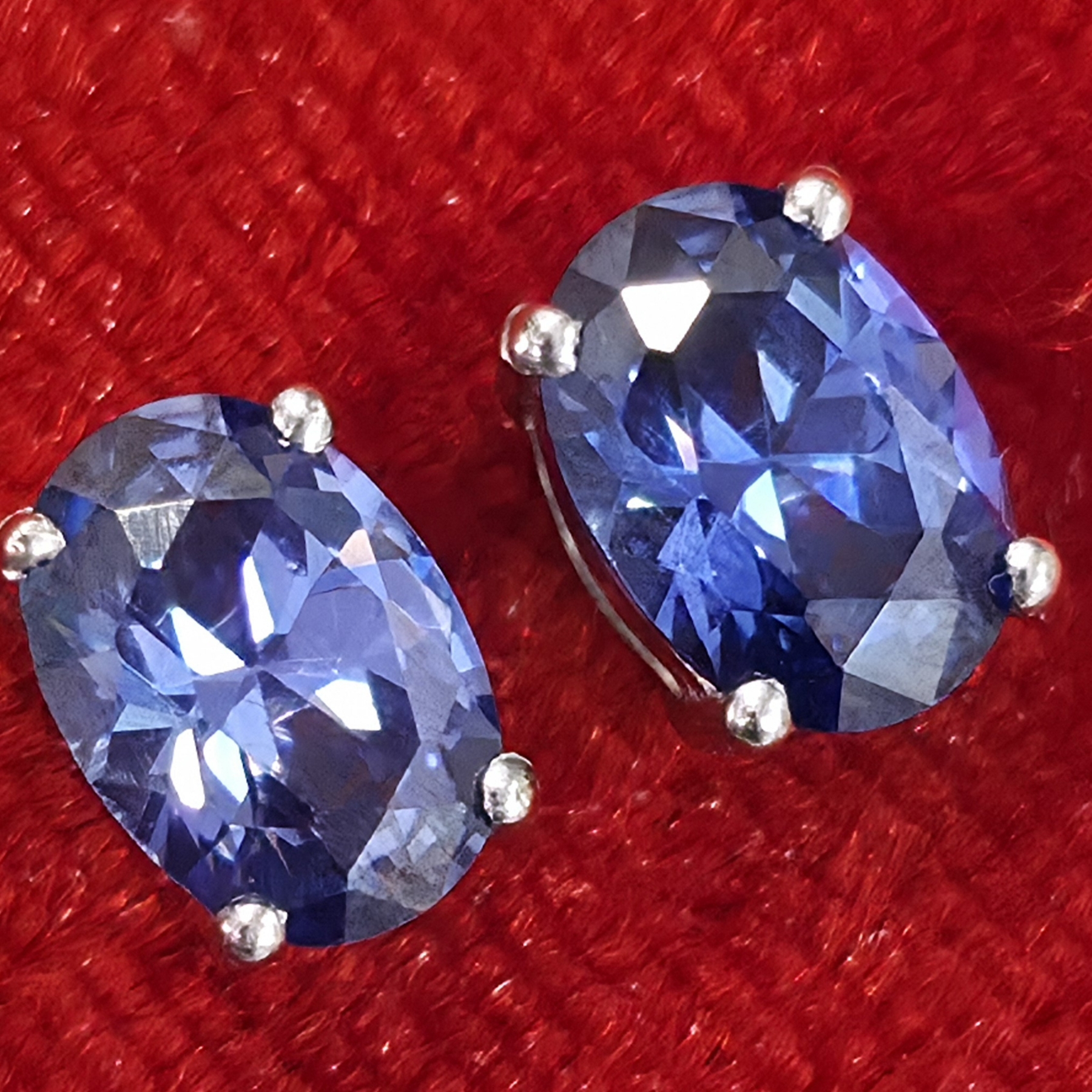 OVAL-CUT TANZANITE SOLITAIRE STUD EARRINGS IN WHITE GOLD/SILVER