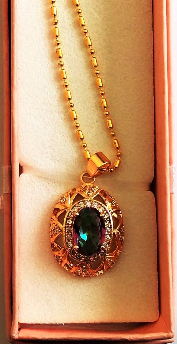 OVAL MYSTIC TOPAZ & CZ CRYSTAL PENDANT & CHAIN