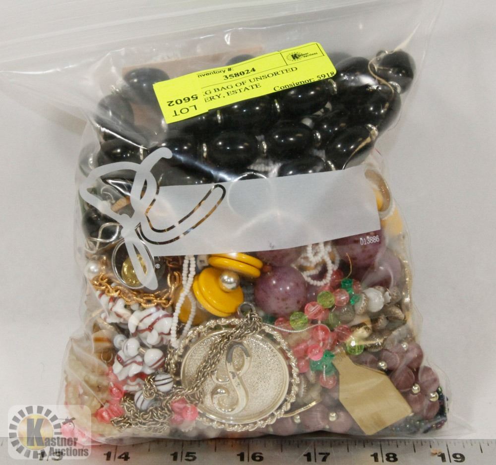 OVER 1KG BAG OF UNSORTED JEWELRY, ESTATE