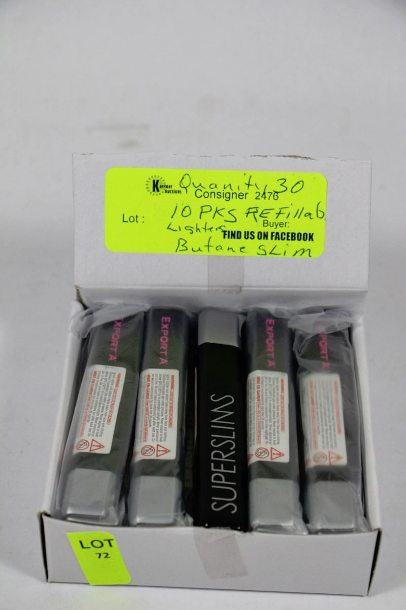PACK OF 10 REFILLABLE BUTANE LIGHTERS