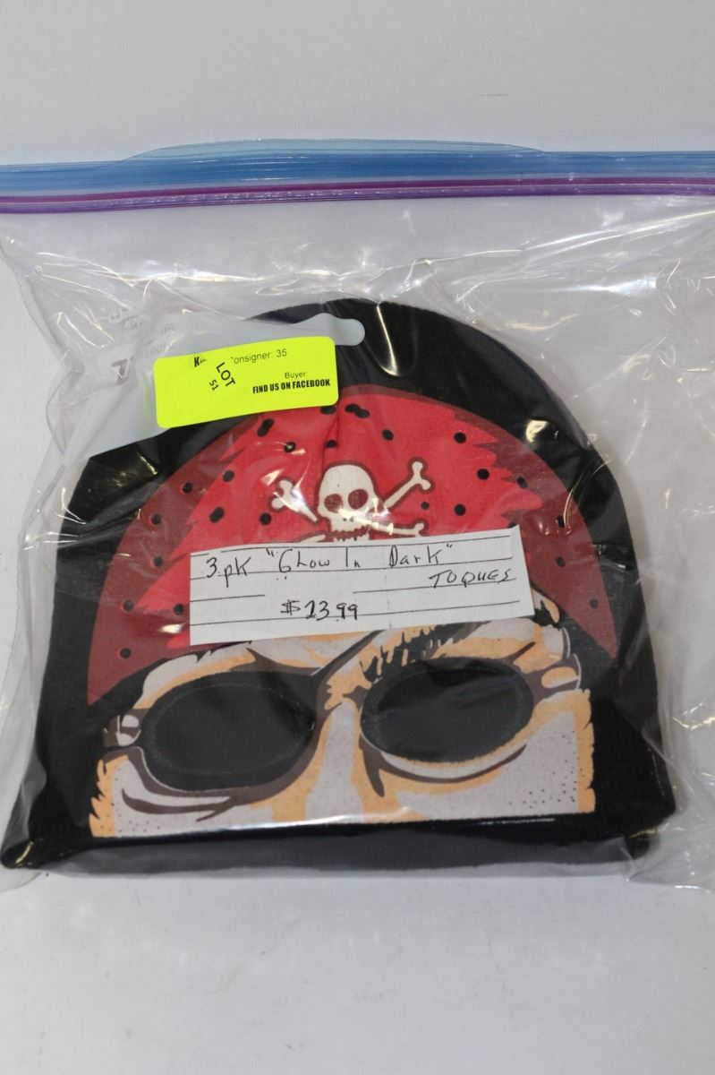 PACK OF 3 GLOW IN THE DARK TOQUES ( AS THEY COME )