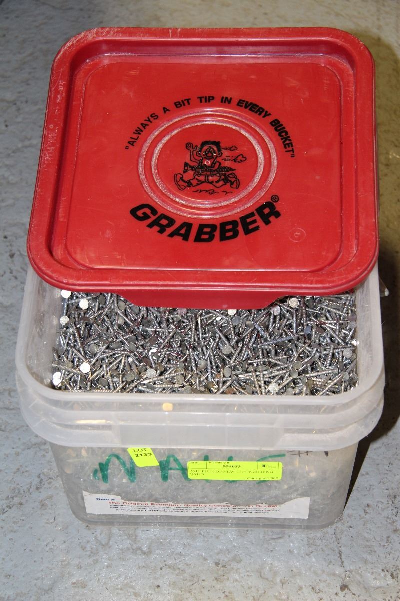 PAIL FULL OF NEW 1 1/4 INCH RING NAILS