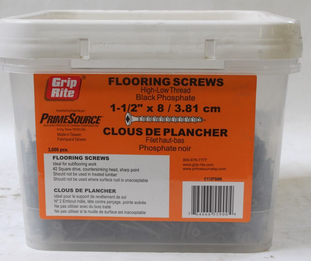 HIGH-LOW THREAD BLACK PHOSPHATE FINISH 3000 PIECES TOTAL #2 SQUARE DRIVE, COUNTER-SINKING HEAD, SHARP POINT SHOULD NOT BE USED IN TREATED LUMBER, OR WHERE SURFACE RUST IS ACCEPTABLE - AS THEY COME INCATALOGUE ORDER