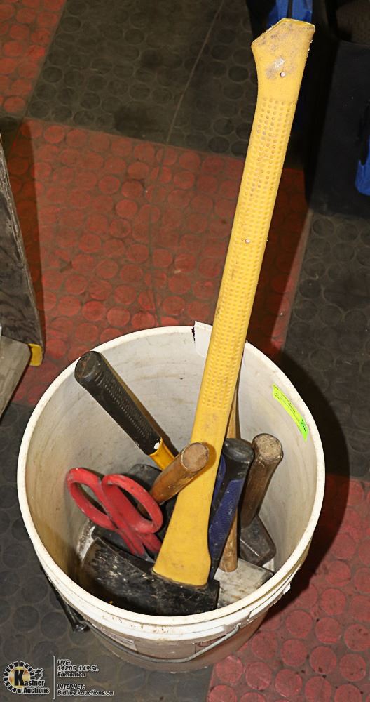 PAIL OF TOOLS INCLUDES AXE AND MORE