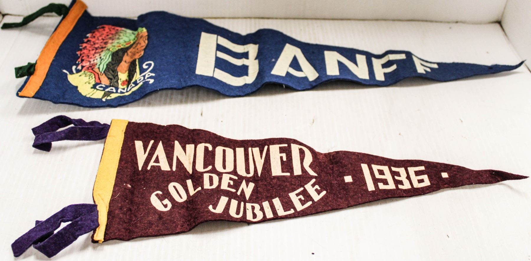PAIR ANTIQUE TRAVEL PENNANTS