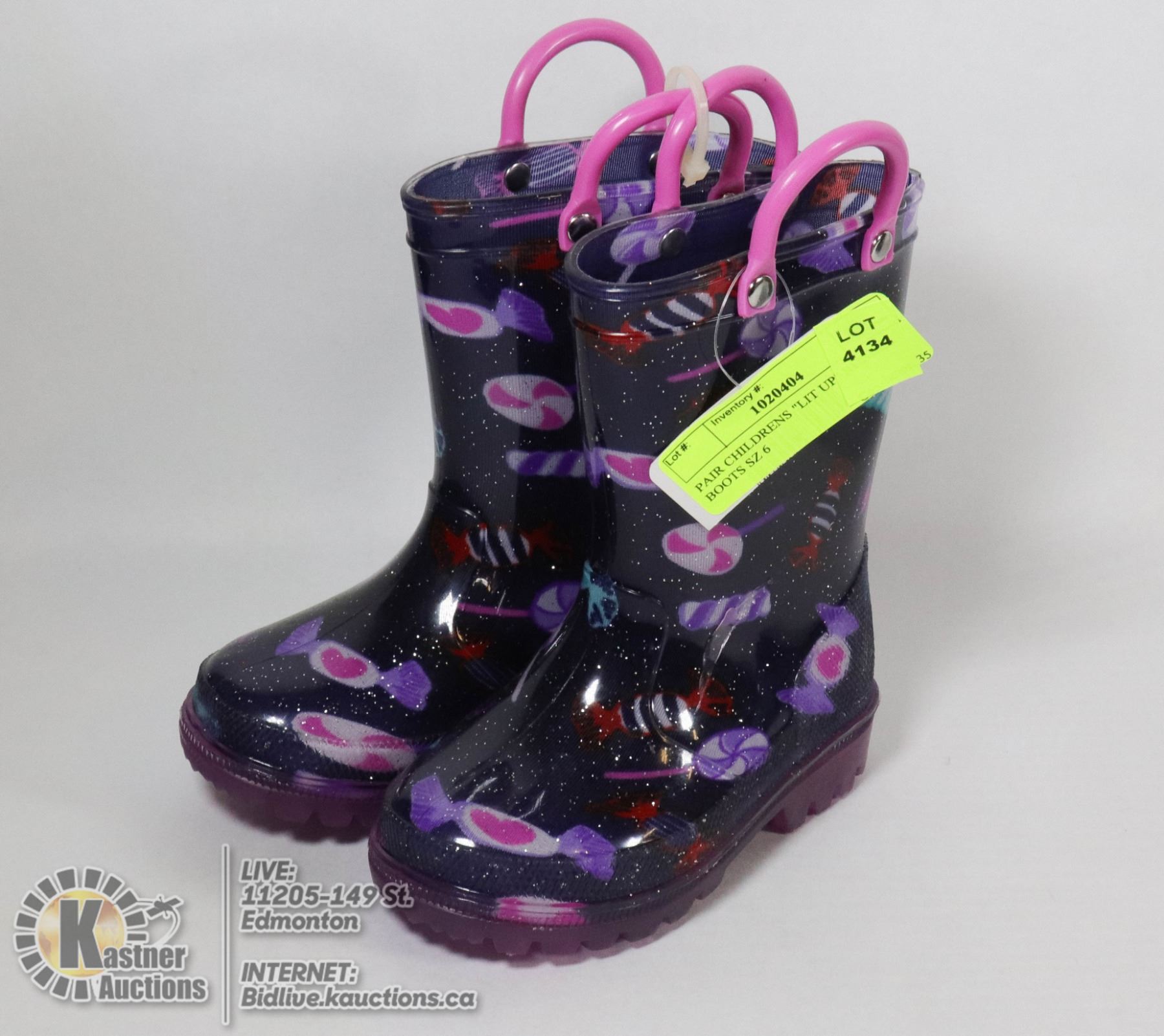 PAIR CHILDRENS "LIT UP" RUBBER BOOTS SZ 6