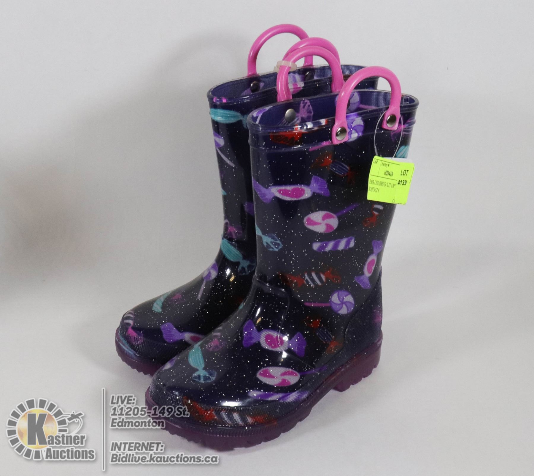 PAIR CHILDRENS "LIT UP" RUBBER BOOTS SZ 9